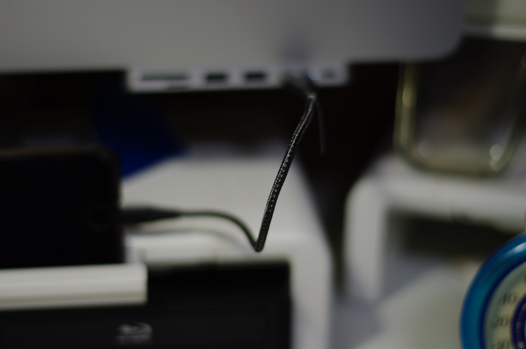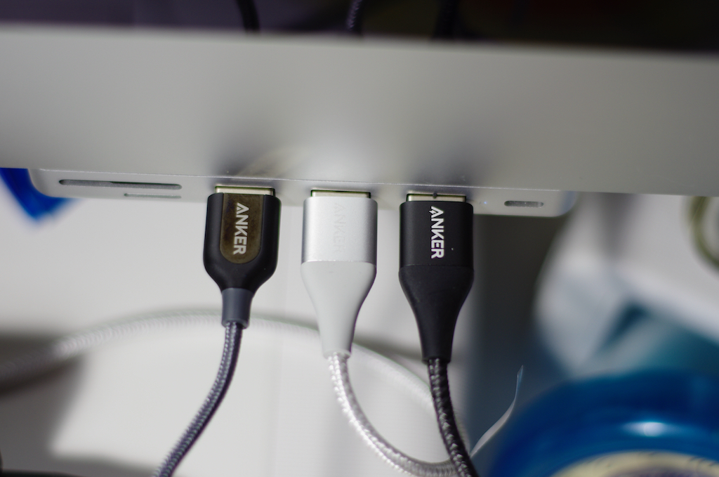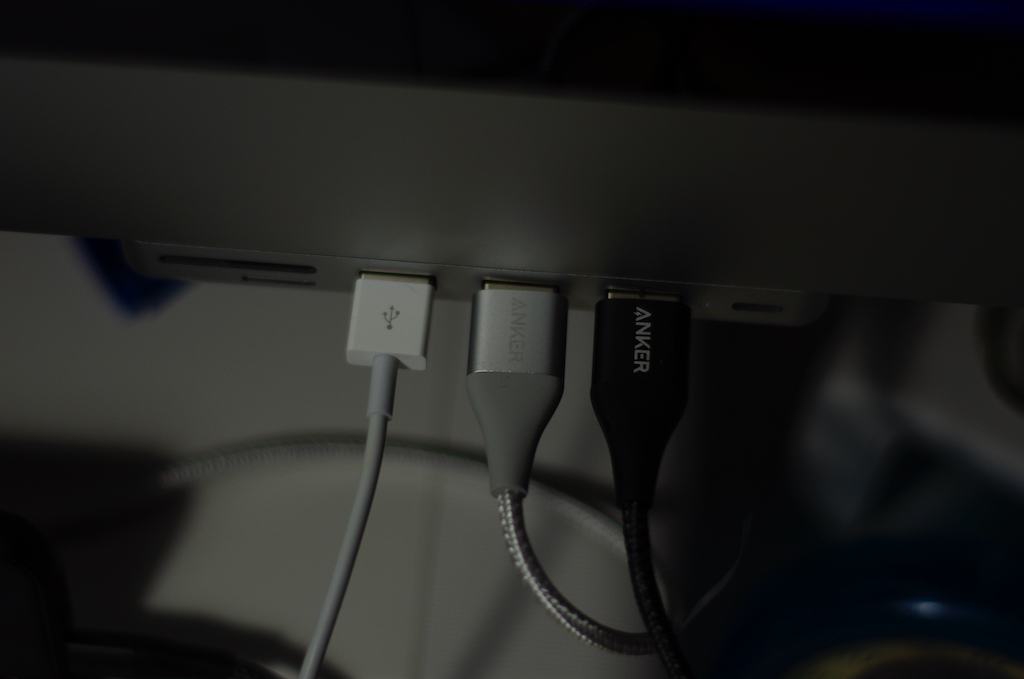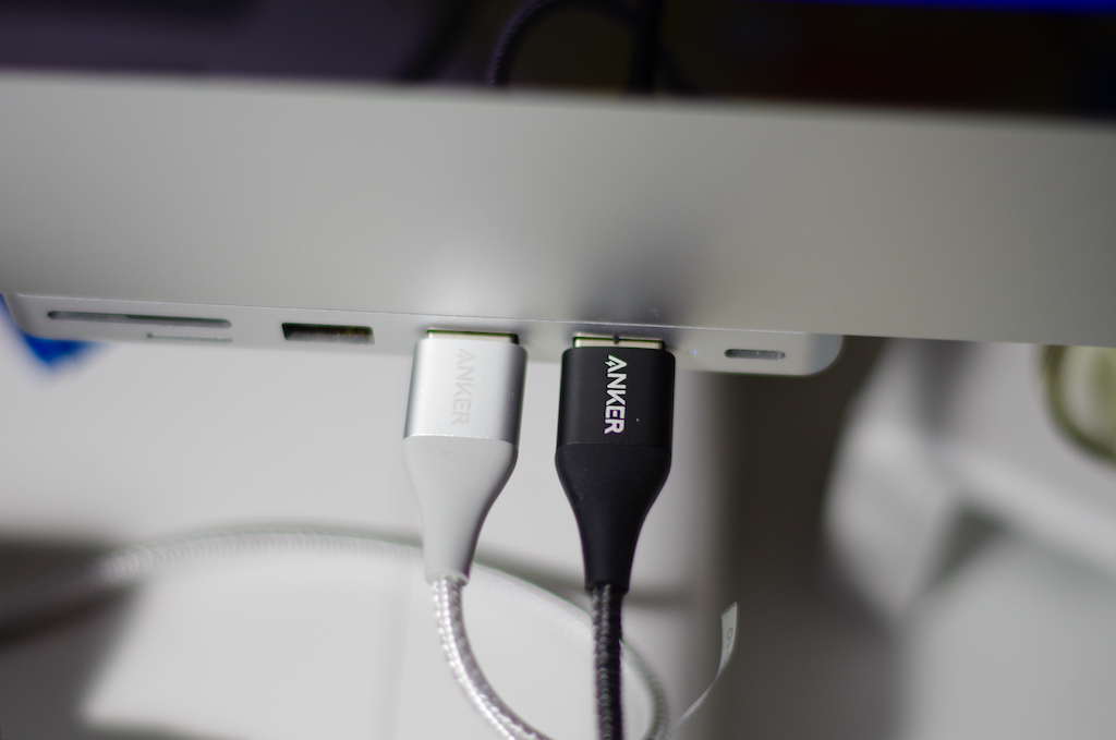 iMac (Retina 5K, 27-inch, 2019)に繋いである、USBハブにシルバー(0.9m)とブラック(0.3m)を接続してみた。