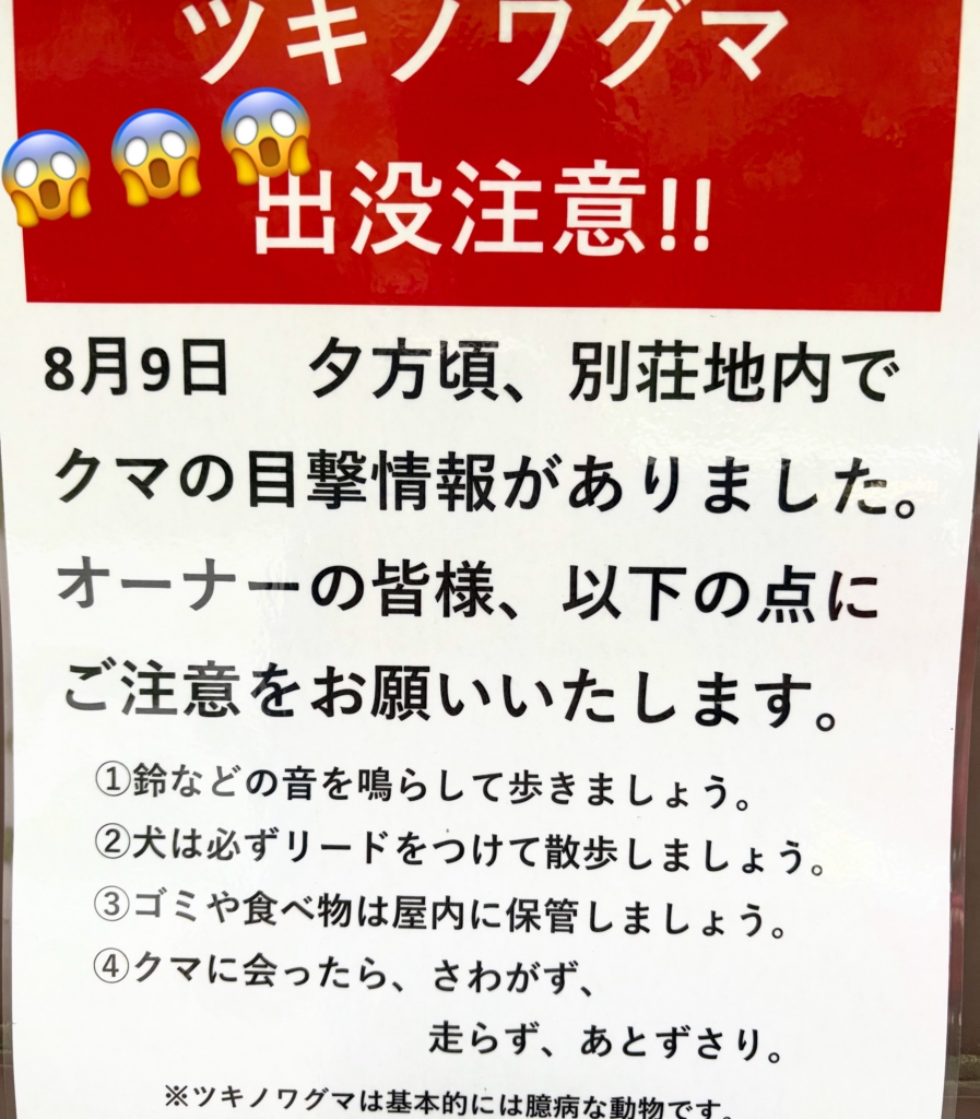 しかも、8/9に…その時は、田楽座に行っていた時だったけど、目撃情報の前に夕方、自転車乗っていたりしたので、ちょっと肝を冷やした。